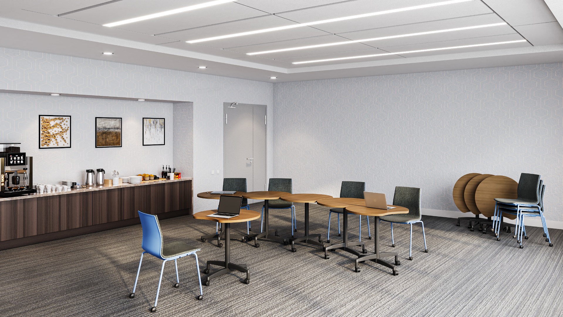• Laminate table top with matching or coordinating PVC edge
